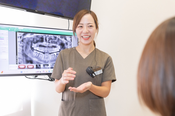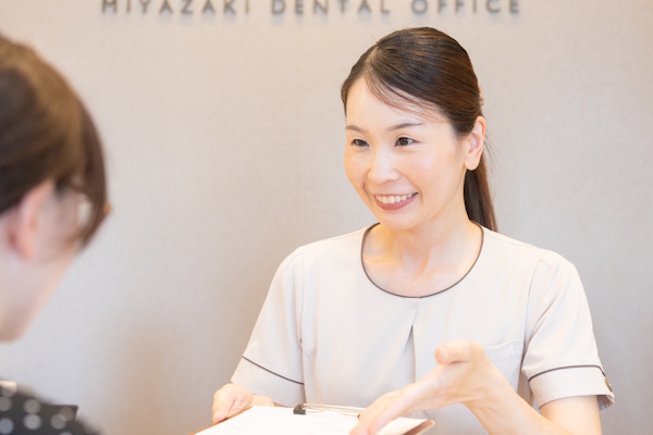 当院では、患者様の歯科治療に対する緊張や不安を少しでも和らげていただけるよう心がけていきます。患者様にお声がけする際には、言葉遣いにも配慮を行き届かせ、ご不快な思いをさせないよう心がけていきます